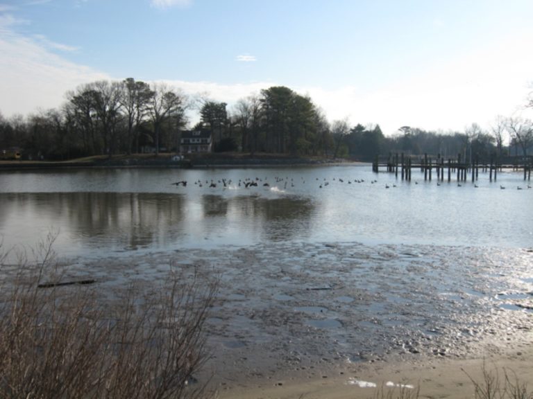 A picture of geese on a creek of the Miles River was disturbed by the camera. The birds suddenly took flight and collided with a passenger airplane over the Hudson River. Our formation took their formation each row led by the leader.