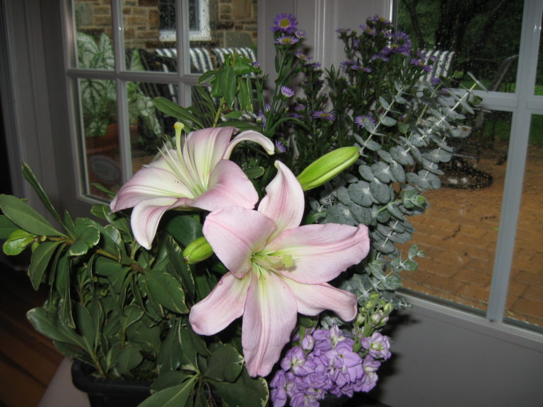 Pink lilies by the door. What enchanting guests without all the folderal of being arranged. I