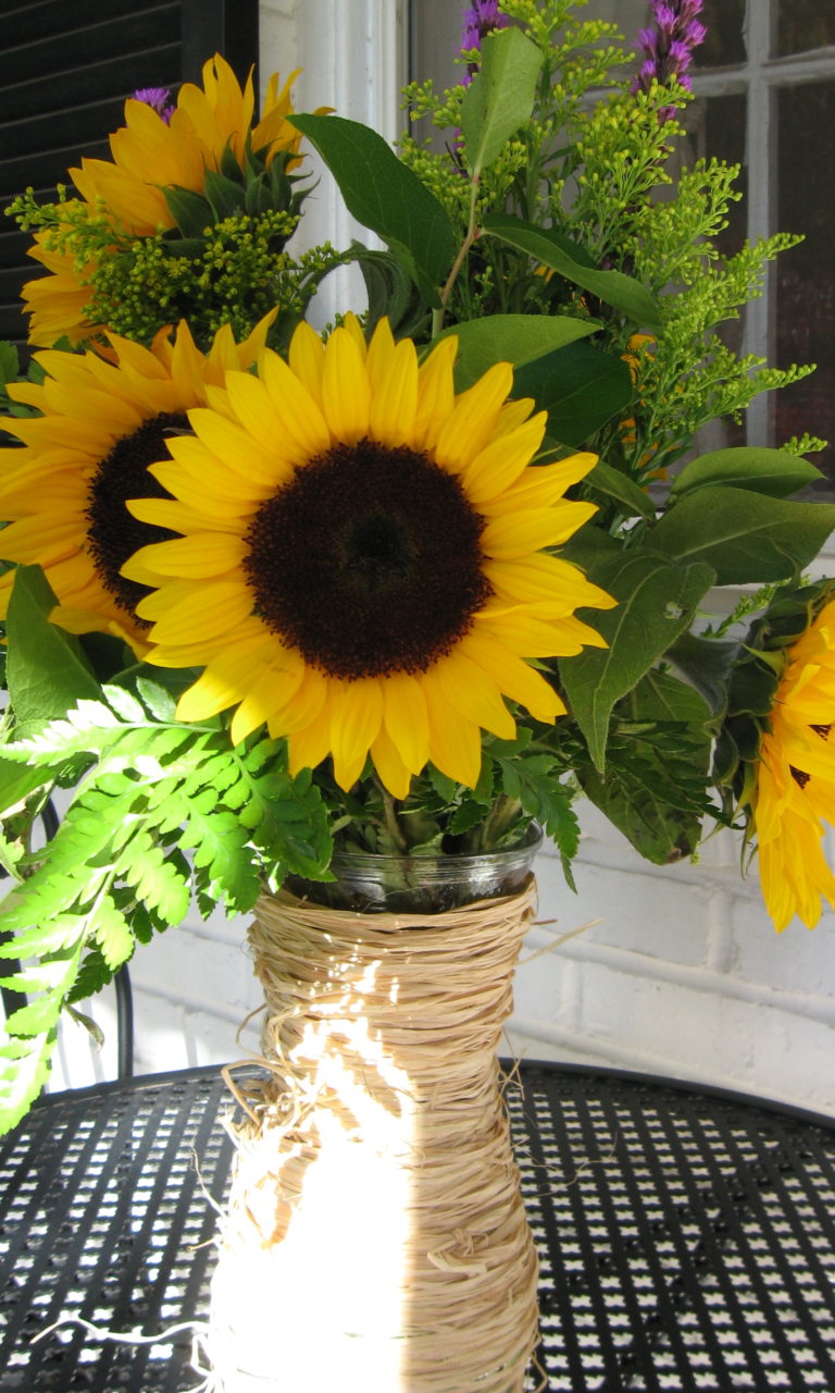 But of course, Sunflowers would be the finest flowers fresh from the fields in October. They will continue until the frost and then they will be a lighter color when they come from South America. Price $40 with raffia vase, $35 without. Watch for November specials.