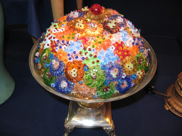 I was lit up, so to speak, by this beaded flower lamp made in Czechoslovakia during the early 1900s. There are no markings on it to tell who or which company/person designed and crafted it but because it it low you can really see the full effect. The beads were made by molds and […]