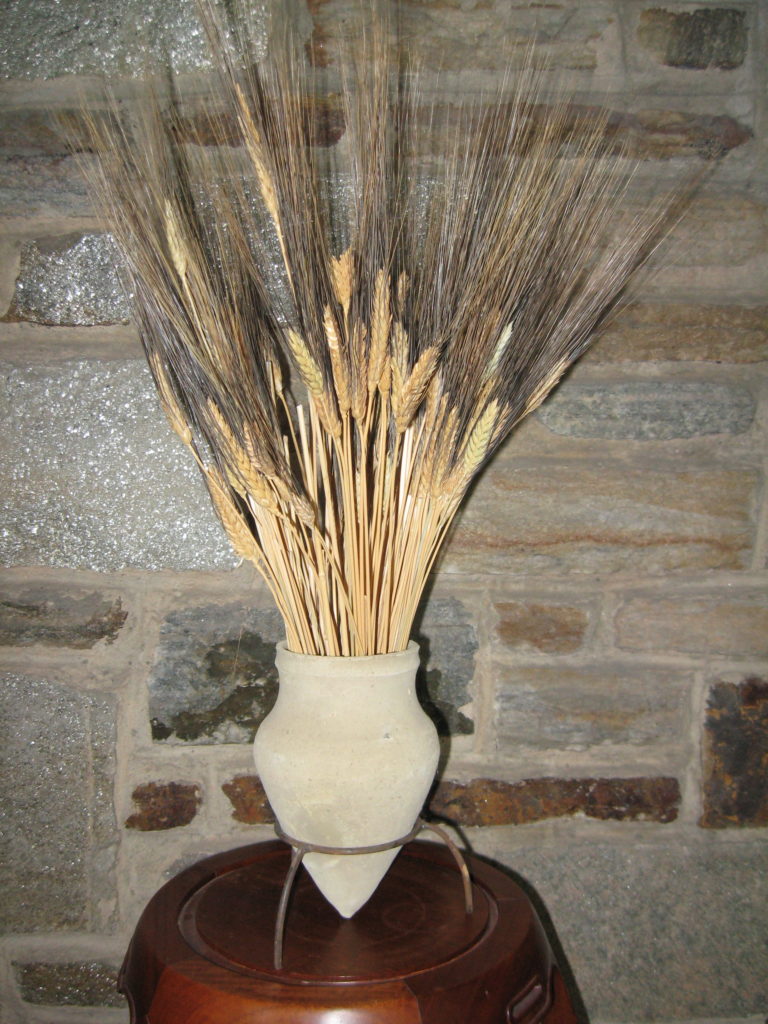 This clay pot was made in Fayoum, Egypt. I was lucky enough to find such a unique vessel at Dumbarton Oaks in Washington, D.C., Georgetown, to be more exact. Because it’s not glazed, I’d probably use a sleeve if you wanted to do a fresh arrangement. Instead I put Blackbeard Reeds to complement as […]